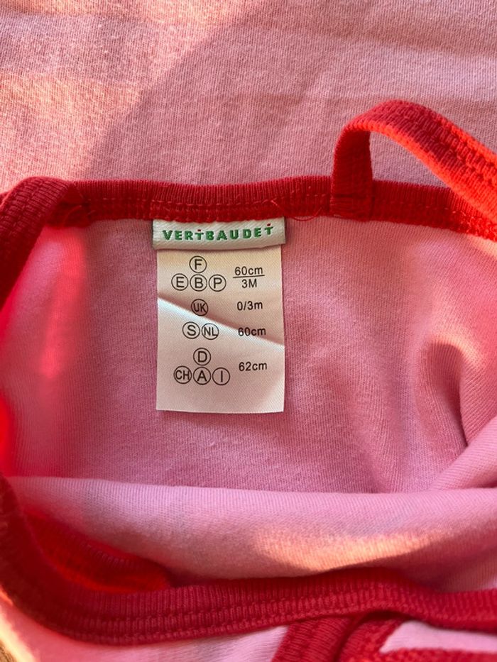 Body débardeur Vertbaudet Rose et rouge Manche courte T. 3 mois Bébé prévue pour février estimé à 4kg donc 3 mois des la naissance alors la saison ne me permet pas de le garder