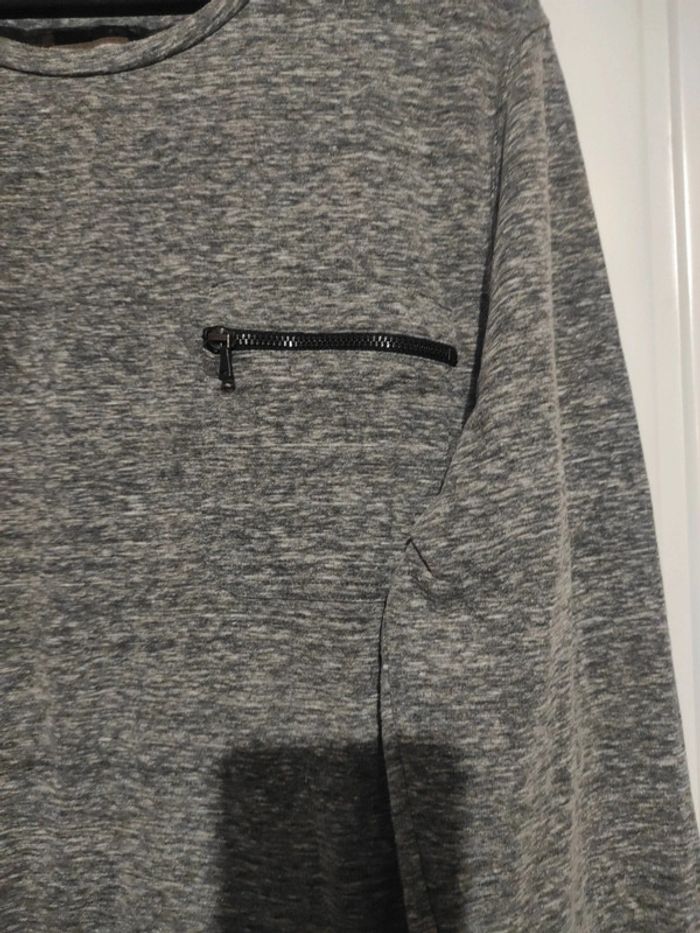 Tee-shirt manche longue homme Devred taille L gris chiné avec une mini poche devant