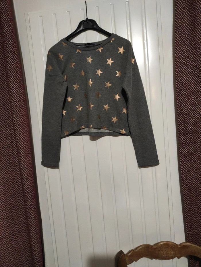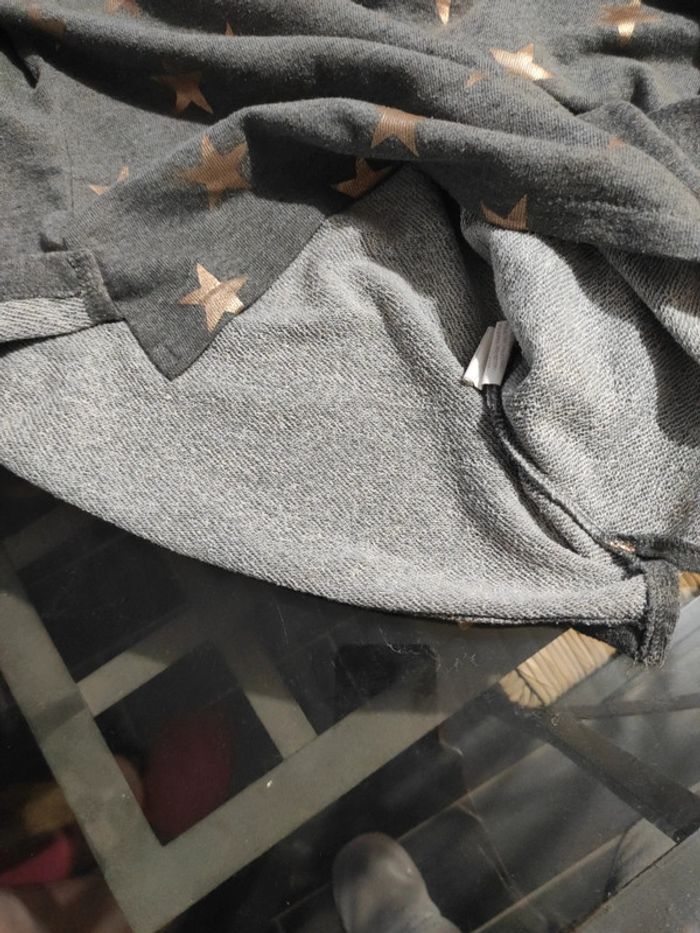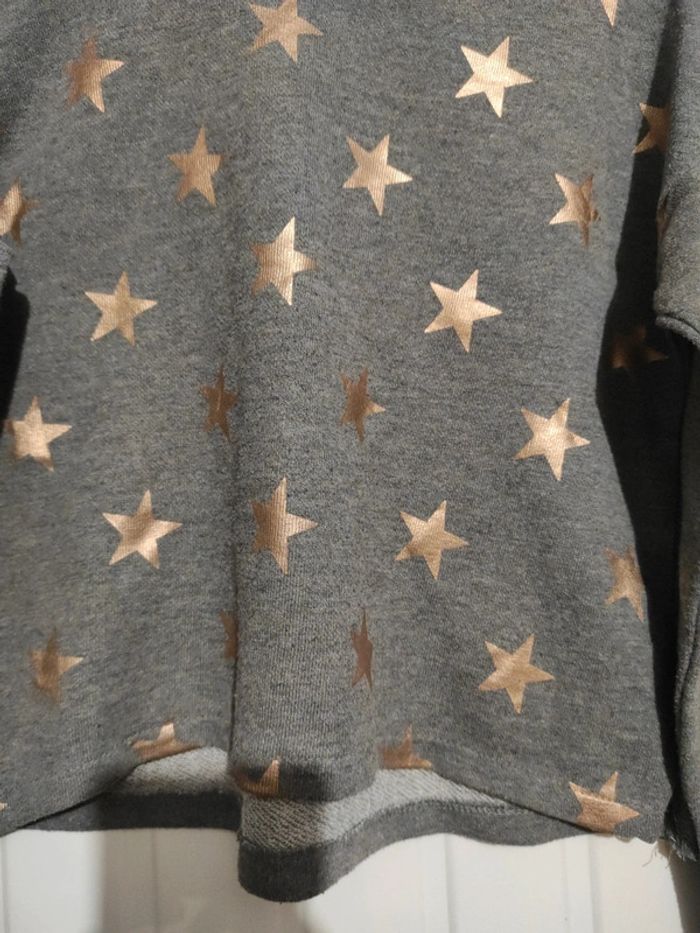 Sweat court fille, Kiabi,gris clair avec des étoiles gold sur le devant