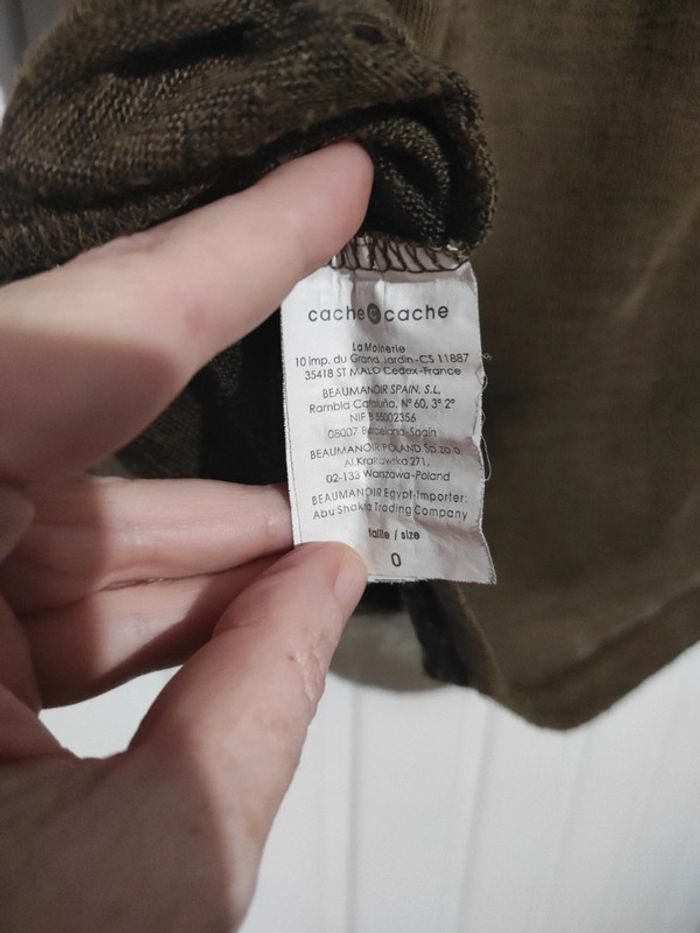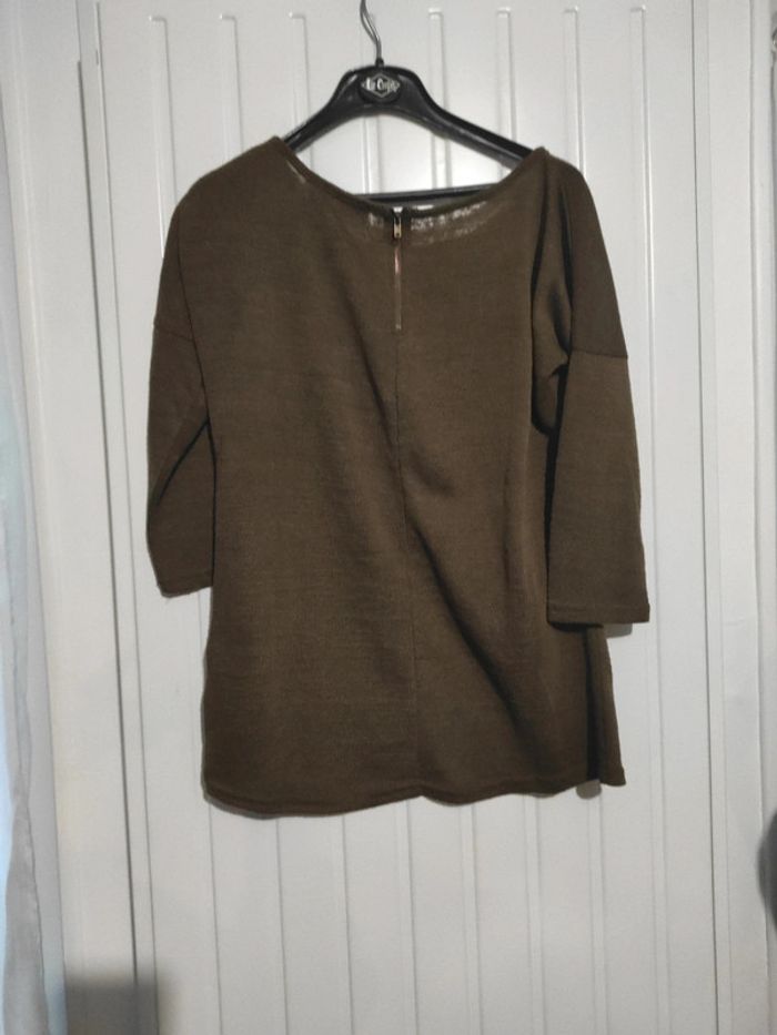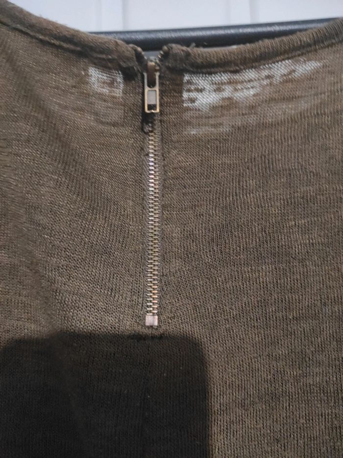 Tee-shirt manche mi longue de couleur kaki Marque cache cache avec une petite poche devant et une fermeture éclair derrière En bon état