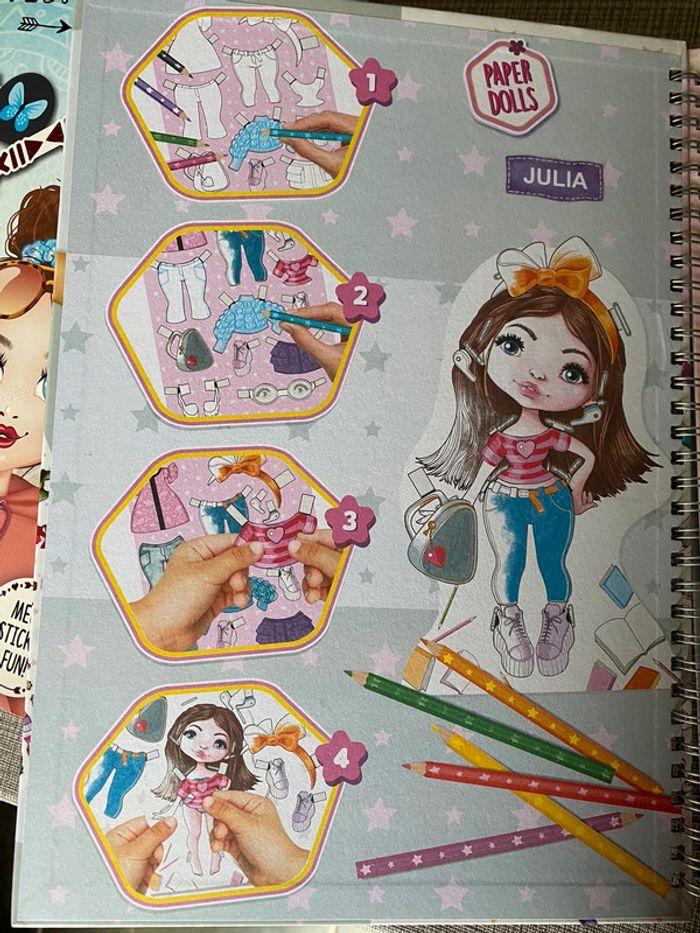 Gros cahier à spirale Activité dressing : autocollant/maquette/coloriages… voir photos Presque neuf très peu de pages coloriées (2 dernières photos) #fashiondesign #fashiondress #cahieractivites