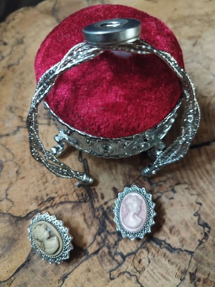 Bracelet argenté avec ses 2 boutons interchangeables Camée jamais porté