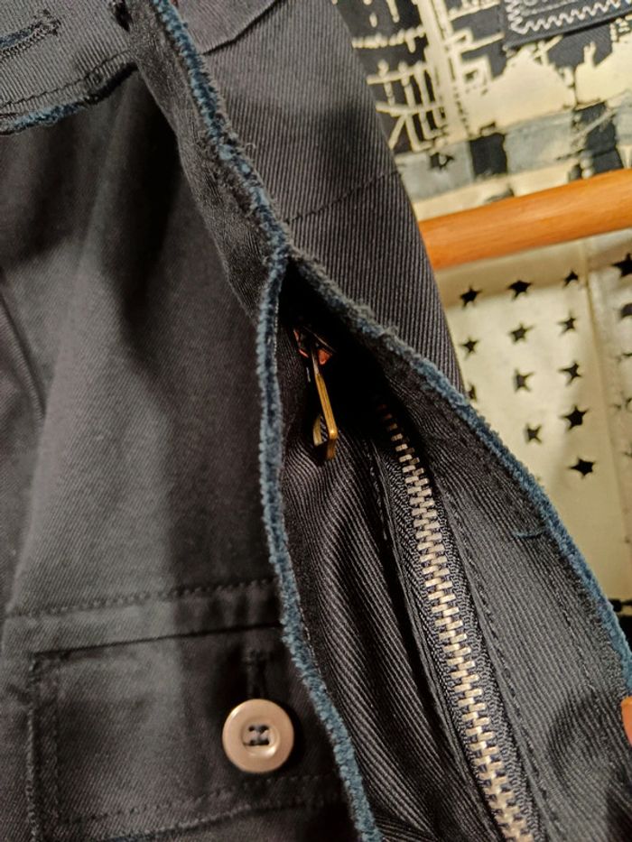 Blazer homme façon MFG. Code du Blazer coupe droite, agrémenté d'une touche d'originalité dans l'encolure et sur les côtés : poches zippés! 2 réelles poches zippées sont cachées dans le col niveau poitrineet un sur le côté de la poche gauche. Tissus en coton fin aspect denim Mesures en photos 😍 #calmlhomme #calmxlhomme #blazermarithefrancoisgirbaud