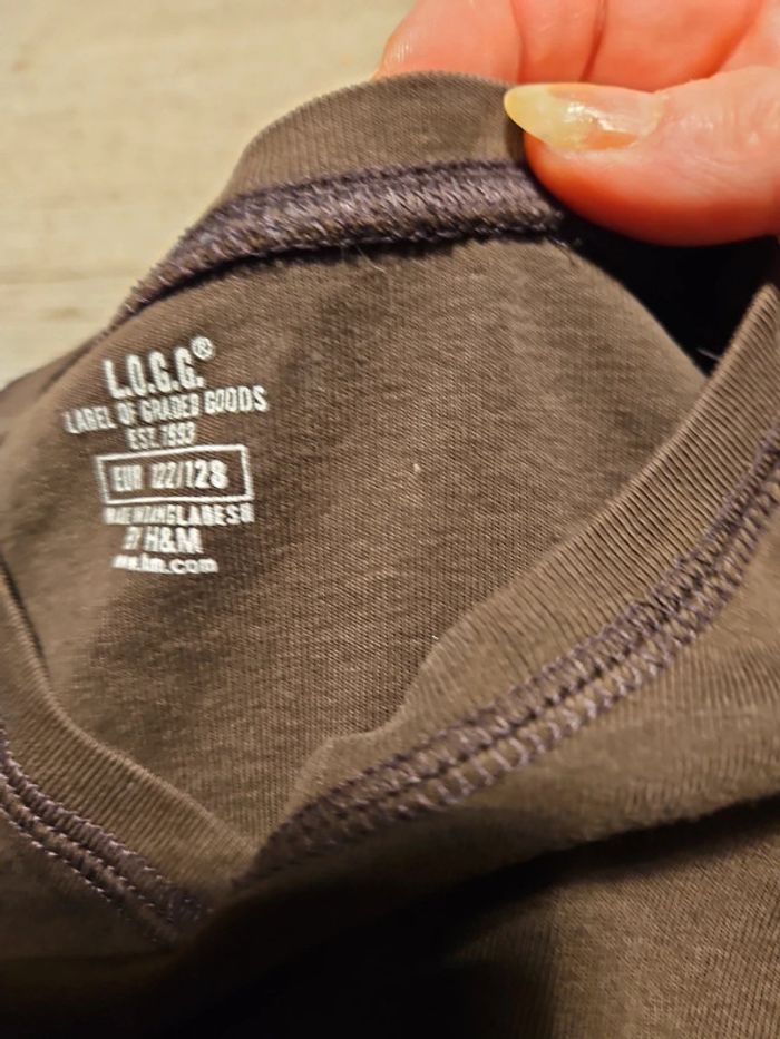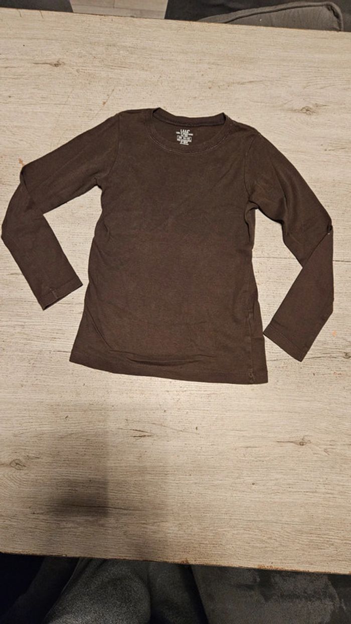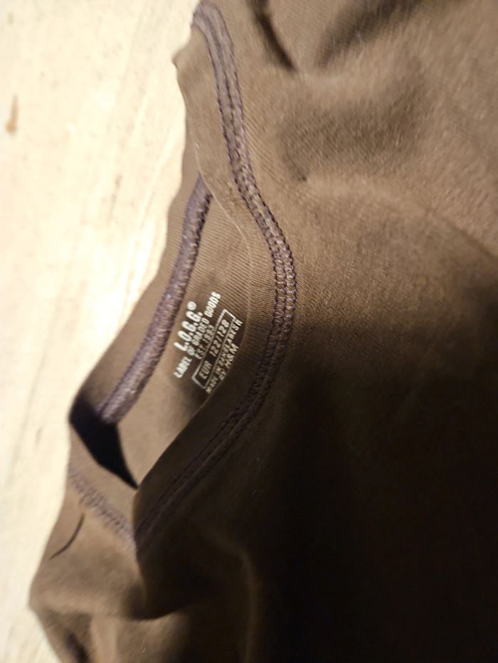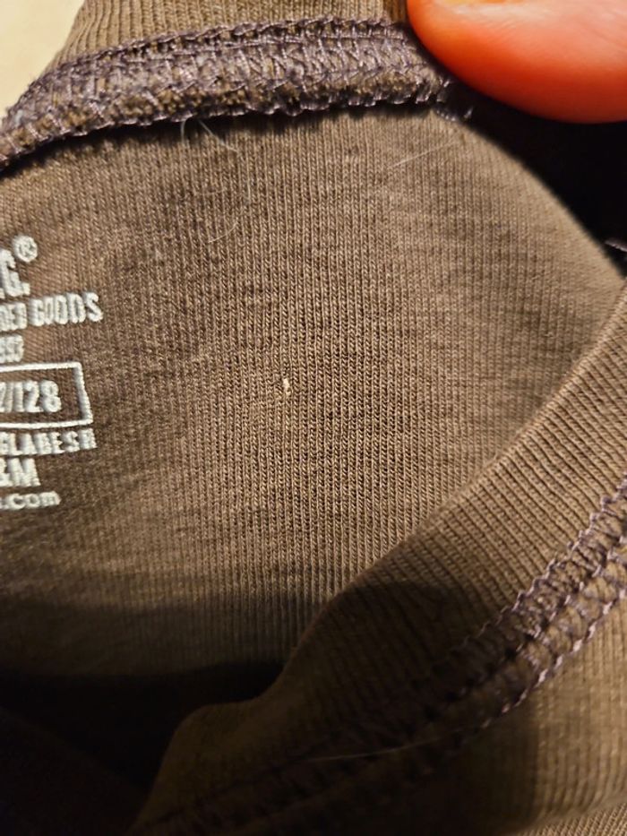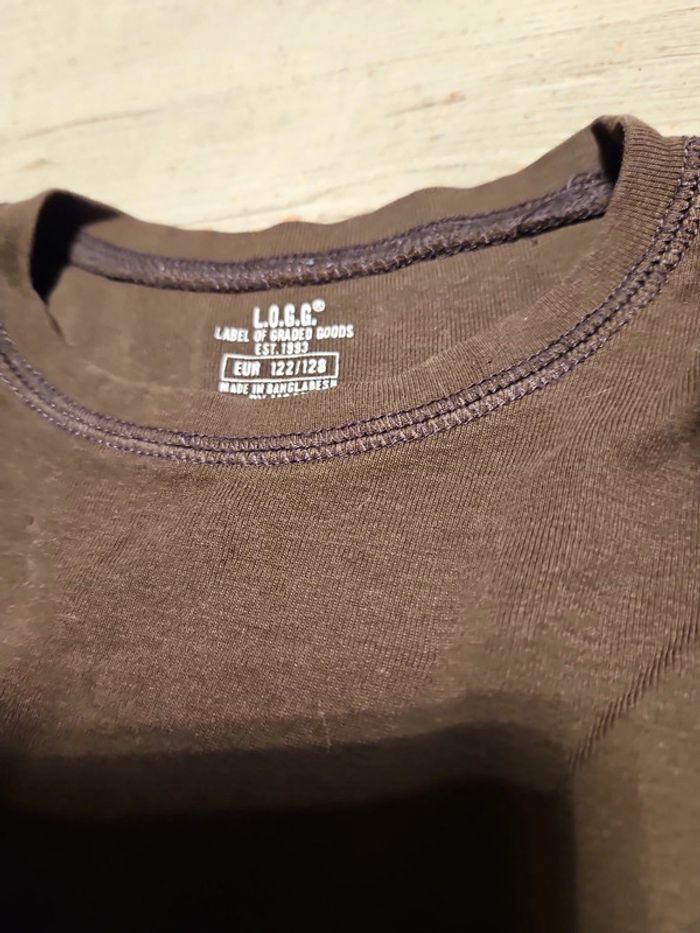 T shirt brun peu mis mais il y a 2 ou3 micro trous donc (1 à l arrière, en haut et 2 dans la double épaisseur du col), pas visibles. Convient pour du 7 à 8 ans #deborahtock_8ans #deborahtock_7ans