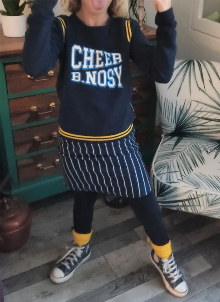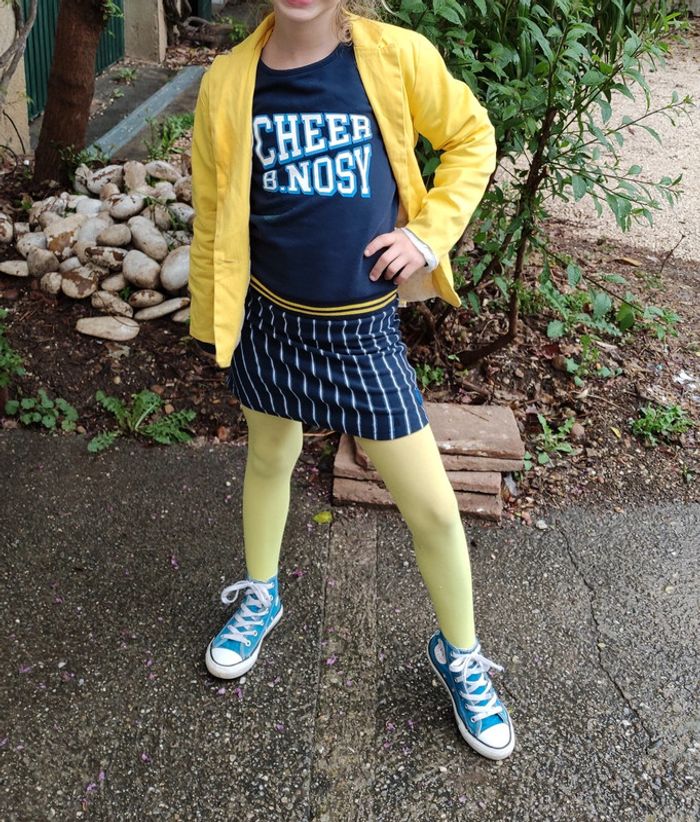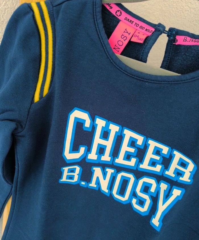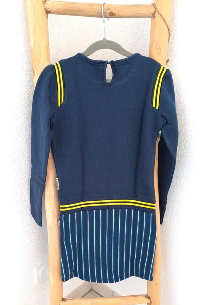 #loulaliefille10ans dans la recherche pour voir mon 10 ans fille Robe chaude B.Nosy 134 / 140 cm, matière sweat épais , bleu marine rayures blanches et jaunes portée 2 fois comme neuve Kiabi seconde main et beebs possible