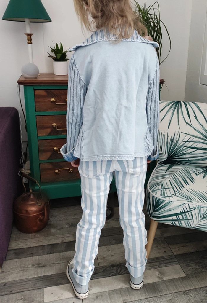 #loulaliefille10ans dans la recherche pour voir mon 10 ans fille Pantalon jean stretch Zara rayé blanc bleu ciel , peu porté mais traces de pliures sur les cuisses. Kiabi seconde main et beebs possible