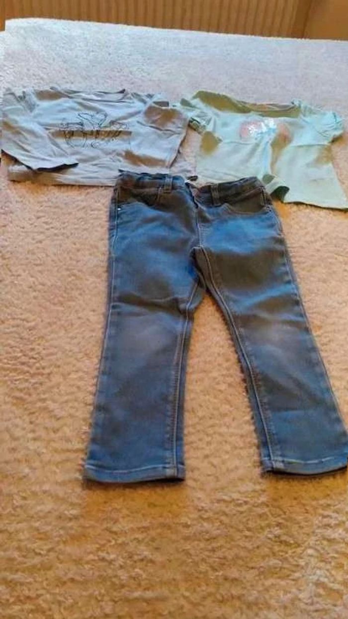 #24moisbebefilleceliapinho #36moisbebefilleceliapinho 🎈 Ensemble 3 pièces porté, mais en très bon état 🎈 1 jeans réglable, #zarababy 🎈 1 t-shirt manches courtes, #inextenso 🎈 1 t-shirt manches longues, #inextenso 🎈 Taille : 2/3 ans