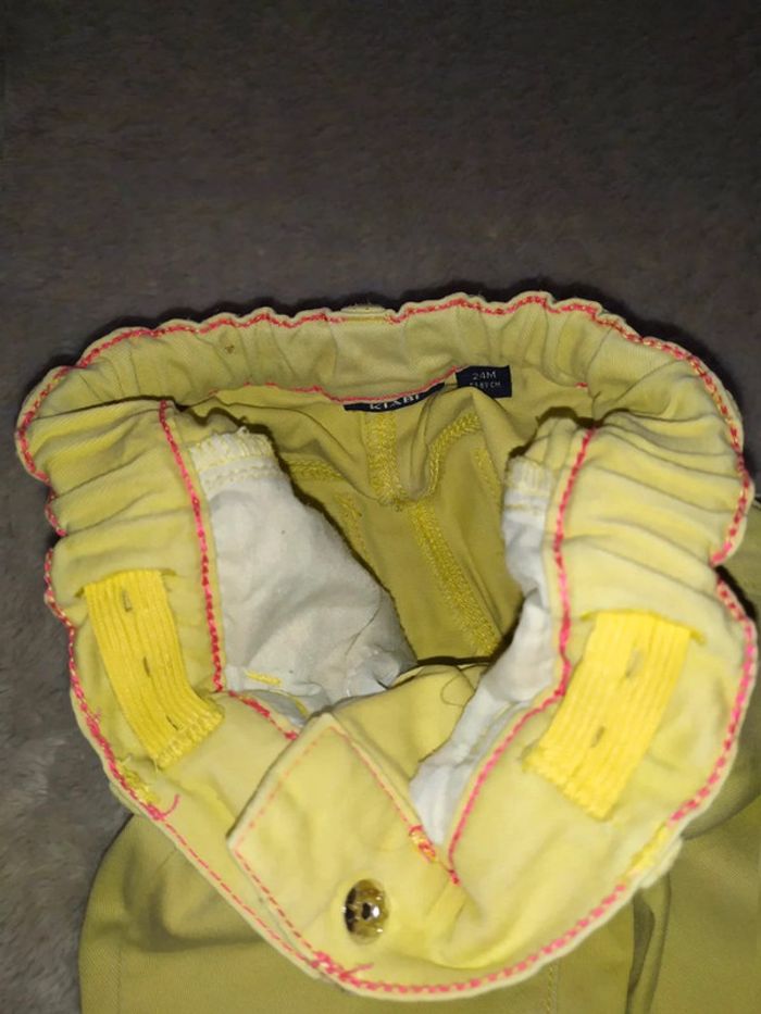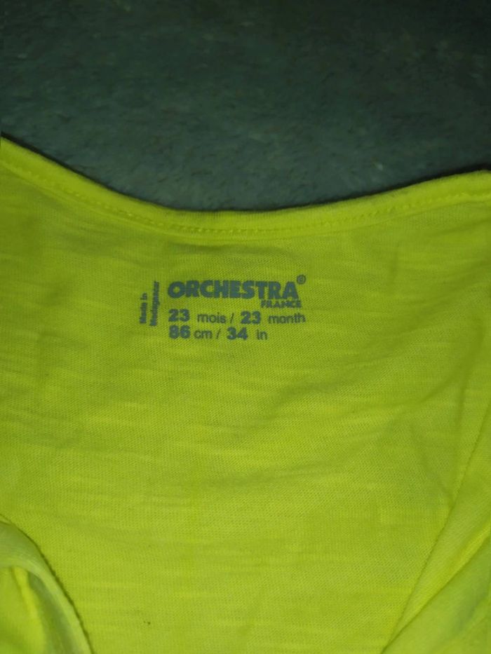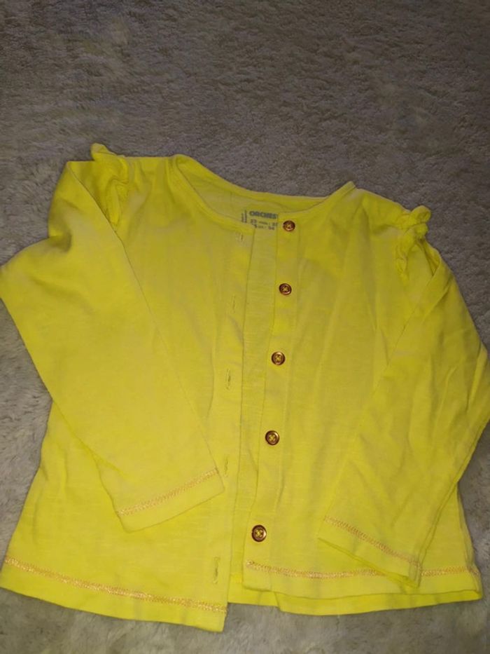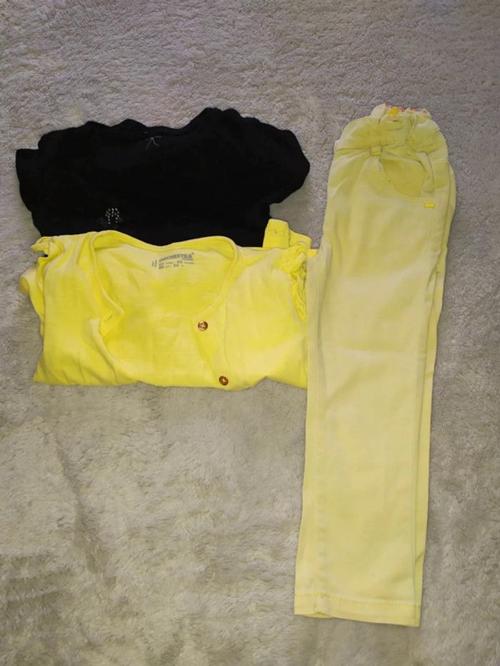 #18moisbebefilleceliapinho #24moisbebefilleceliapinho 🎈 Lot 3 pièces, en très bon état 🎈 1 pantalon jaune, réglable, 83/89cm, #kiabi 🎈 1 gilet jaune, porté 1x en très bon état, 86cm, #orchestra 🎈 haut manches longues noir, en très bon état (il manque que quelques brillants, visible sur les photos), 2 ans, #inextenso