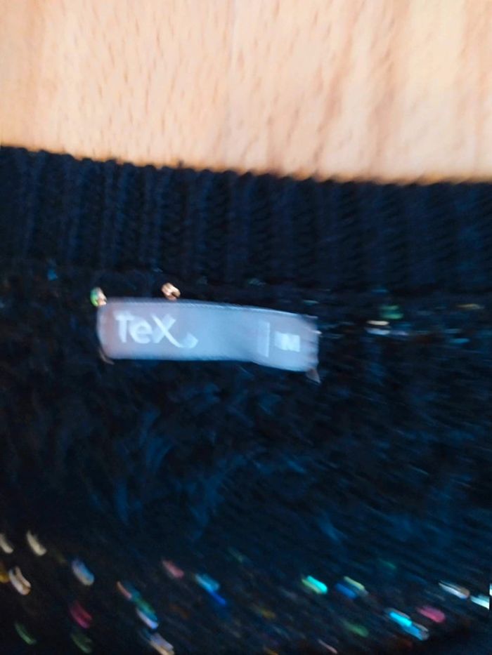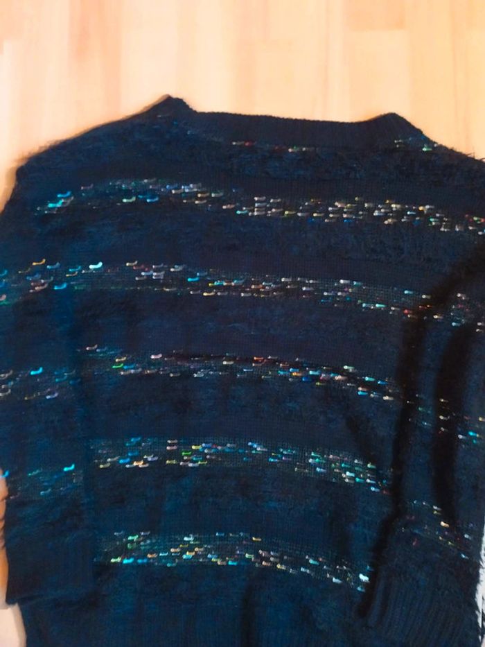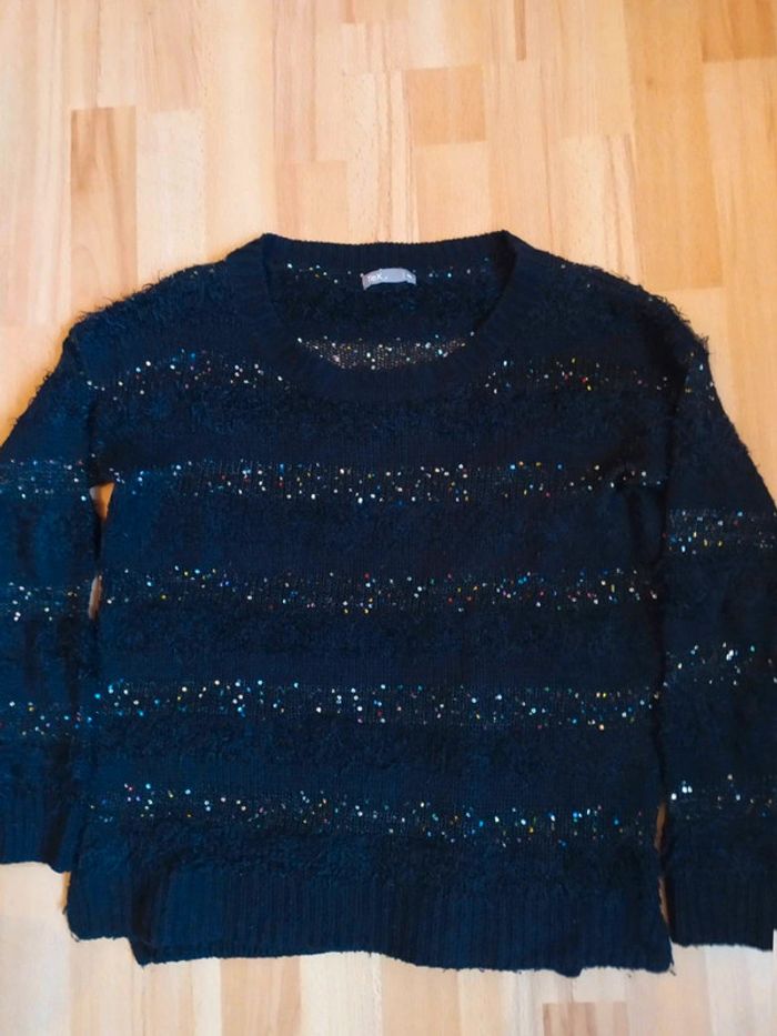 #38femmeceliapinho ♀️ pull noir avec de rayures paillettés, en très bon état ♀️ Taille : M ♀️ #tex