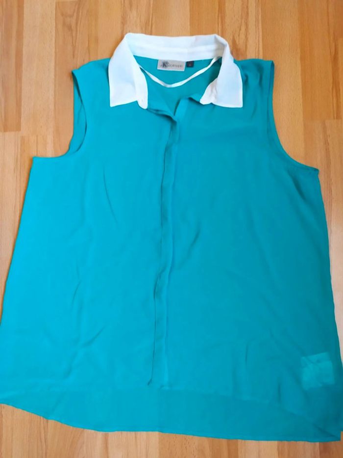 #44femmeceliapinho 🌞 Blouse sans manches, tissu très léger et un peu transparent 🌞 pas porté à peine lavé 🌞 taille 44 🌞 #kwoman 🌞 couleur entre le vert et blue
