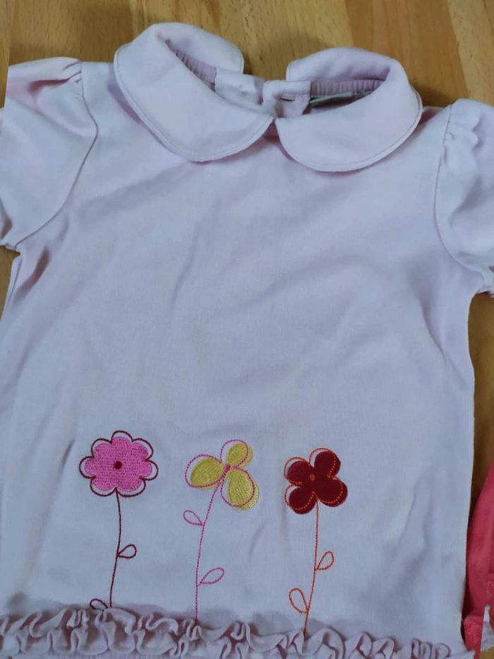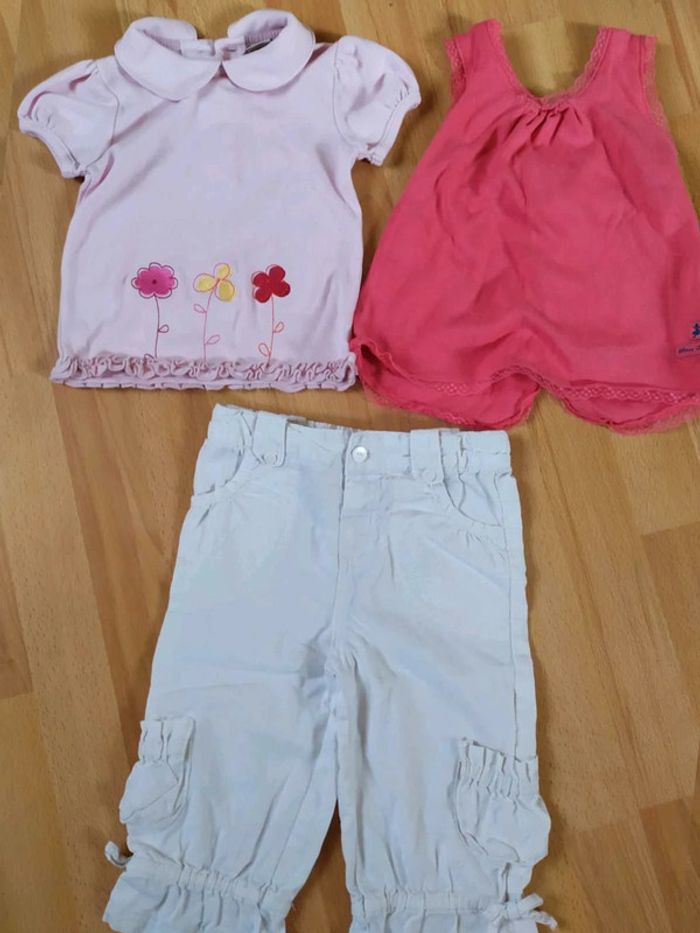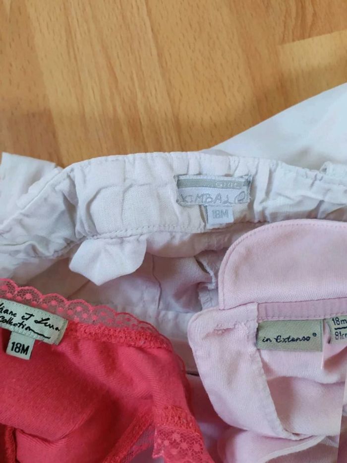 #12moisbebefilleceliapinho #18moisbebefilleceliapinho Lot 3 pièces 🎀 1 pantalon blanc en très bon état - Kimbalo 🎀 1 haut rose fonce, avec quelques bouloches 🎀 1 haut manches courtes en bon état. 🎀 12 - 18 mois