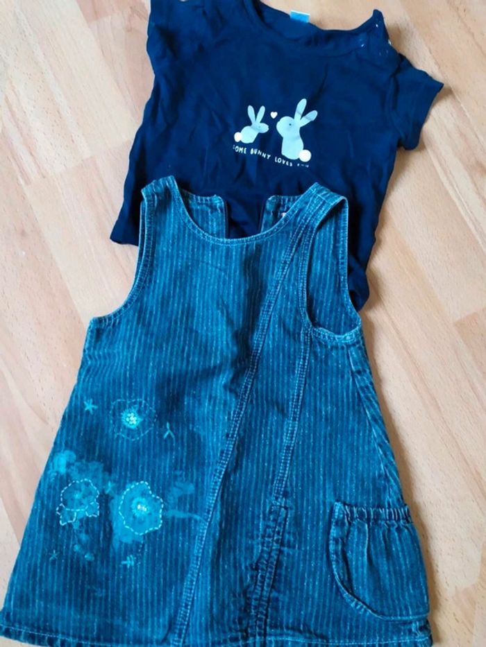 #12moisbebefilleceliapinho #18moisbebefilleceliapinho Ensemble 2 pièces 🌺 1 robe jeans - orchestra 🌺 1 t-shirt - Zeeman 🌺 12 - 18 mois 🌺 En très bon état