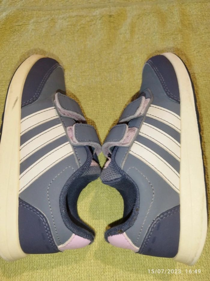 #chaussuresfille28celiapinho 😺 Baskets fille adidas, beaucoup portés avec traces d'usure visibles sur les photos, mais restent en bon état général 😺 Fermeture à scratch 😺 Pointure: 28