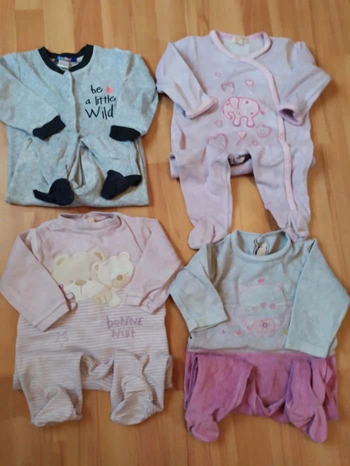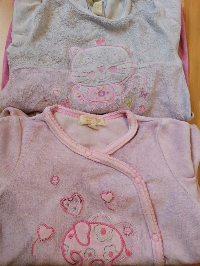 #9moisbebefilleceliapinho #12moisbebefilleceliapinho Lot 4 pyjamas velours 🛍 portés, quelques bouloches mais en bon état 🛍 9 - 12 mois 🛍 manches longues