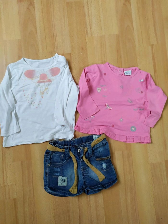 #9moisbebefilleceliapinho #12moisbebefilleceliapinho Ensemble 3 pièces 🖍 1 caleçon - Zara baby - en très bon état 🖍 1 haut rose - Tap à l'oeil - en bon état - petit trou derrière (voir photo 5) 🖍 haut blanc - en bon état - petit tâches (voir photo 4) 🖍 9 - 12 mois