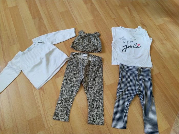 #6moisbebefilleceliapinho #9moisbebefilleceliapinho Lot de 4 pièces 🛒 legging motif tigre + bonnet ( 9 - 12 mois) 🛒 pièces restants ( 6 - 9 mois) 🛒porté, mais en bon état général
