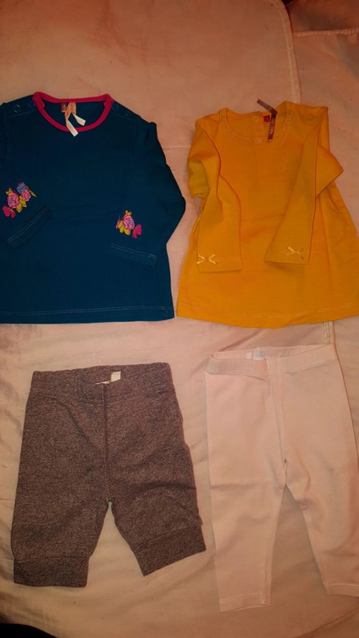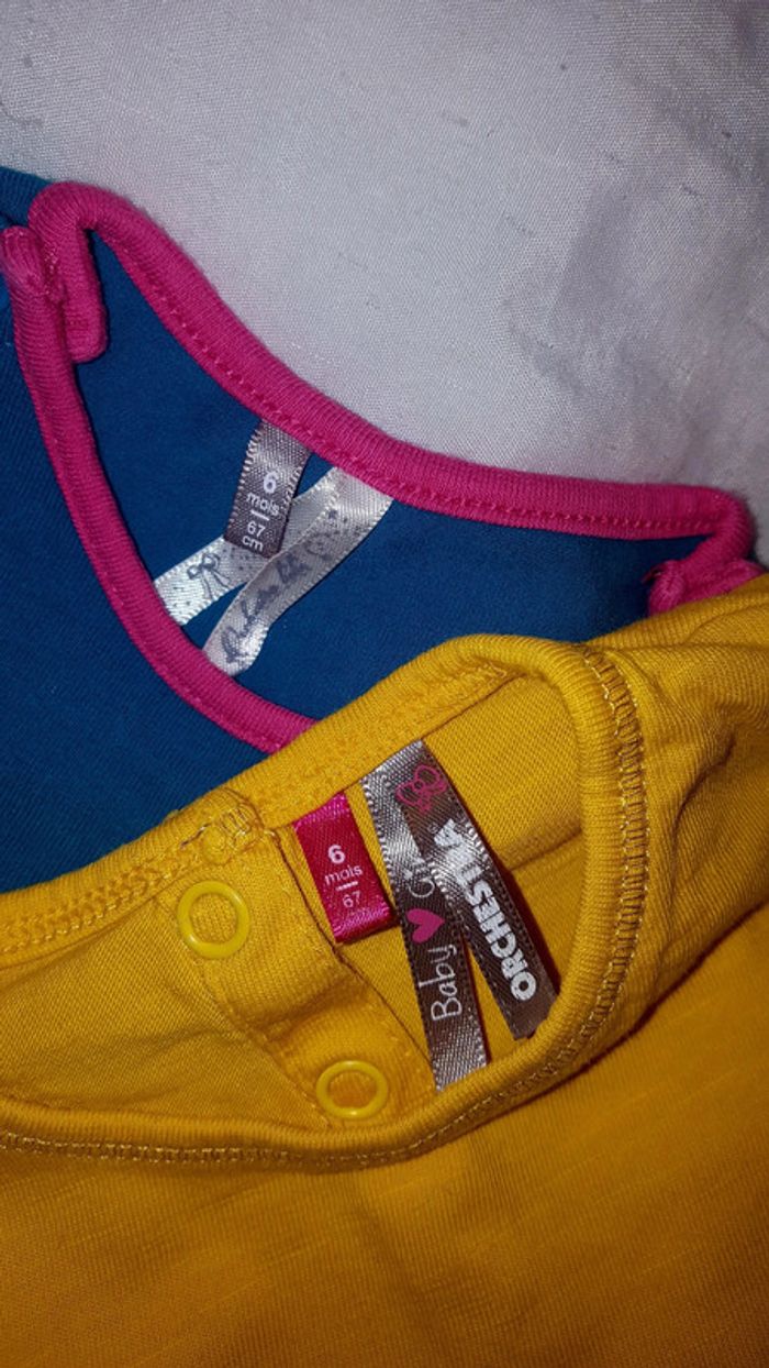 #3moisbebefilleceliapinho #6moisbebefilleceliapinho Lot 4 pièces 📌6 mois 📌 petit défaut de couture sur le haut jaune (voir photo 4)