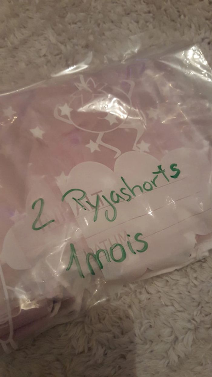#naissancebebefilleceliapinho #1moisbebefilleceliapinho Lot de 2 pyjashorts Vertbaudet en très bon état. Porté que 3 fois. 1mois 54cm