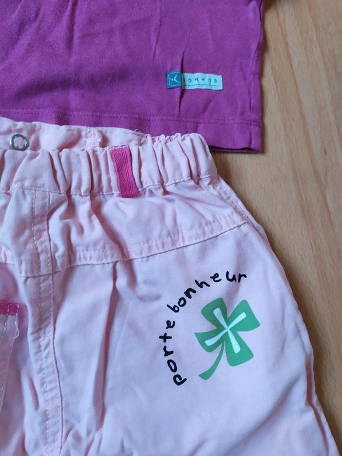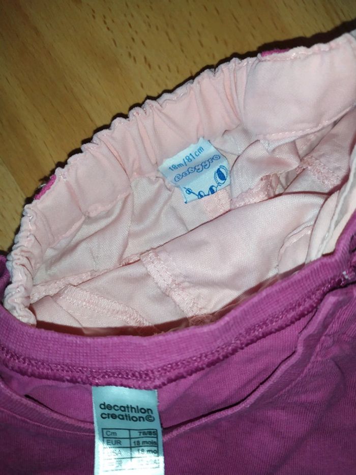 #12moisbebefilleceliapinho #18moisbebefilleceliapinho Lot 2 pièces 🎈 1 pantalon rose clair en très bon état - babygro 🎈 1 t-shirt rose foncé - domyos - en bon état - la couler un peu usé, mais rien de gênant.