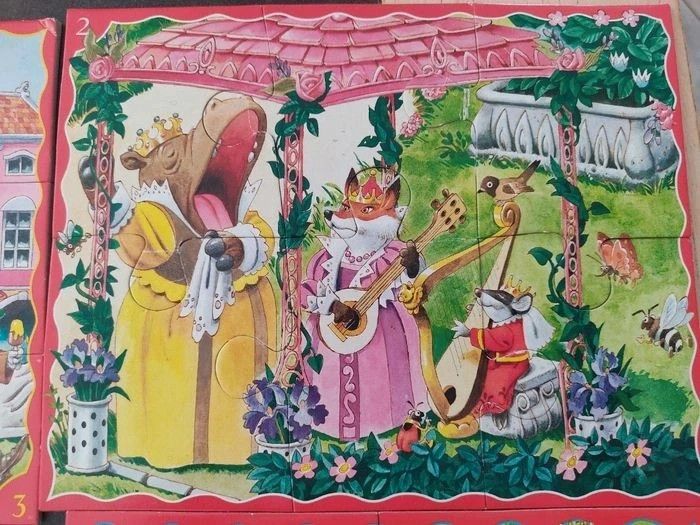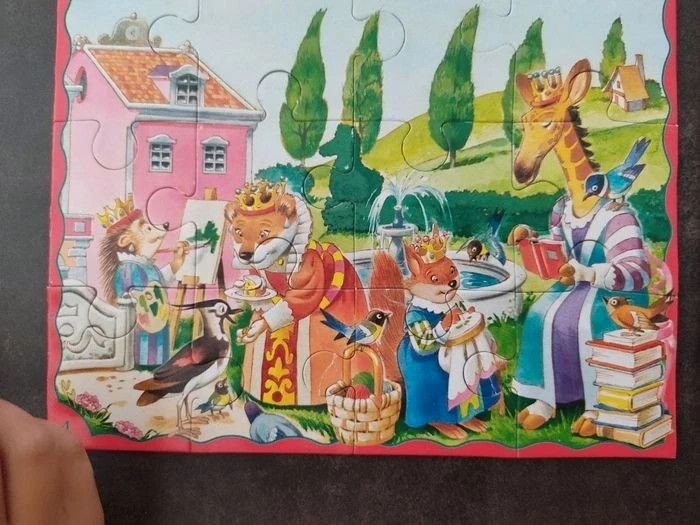 Boîte de 4 puzzles évolutif de 4 à 12 pièces ( 4/ 6/ 9/ 12). 19 * 24 cm Idéal pour les tout petits dès 3 ans. Image d roi d animaux Complet Marques d utilisation : certaines pièces peuvent avoir un petit plus au niveau de la tête ou se décoller légèrement sans que cela gêne l emboîtement du puzzles ( voir photos)