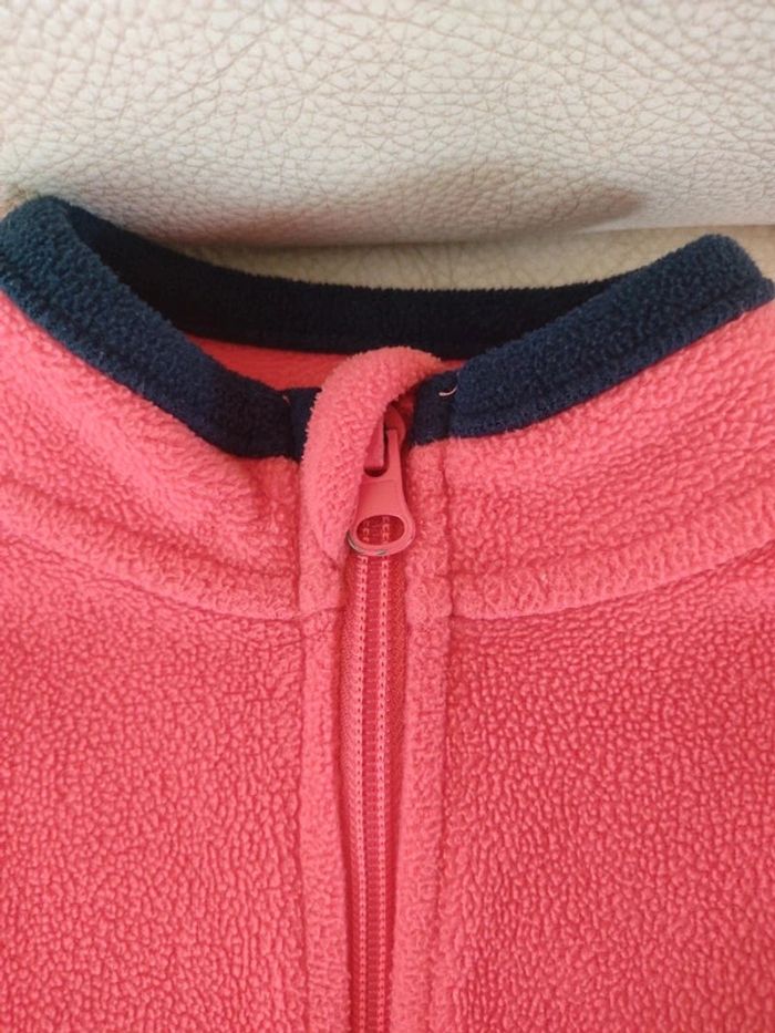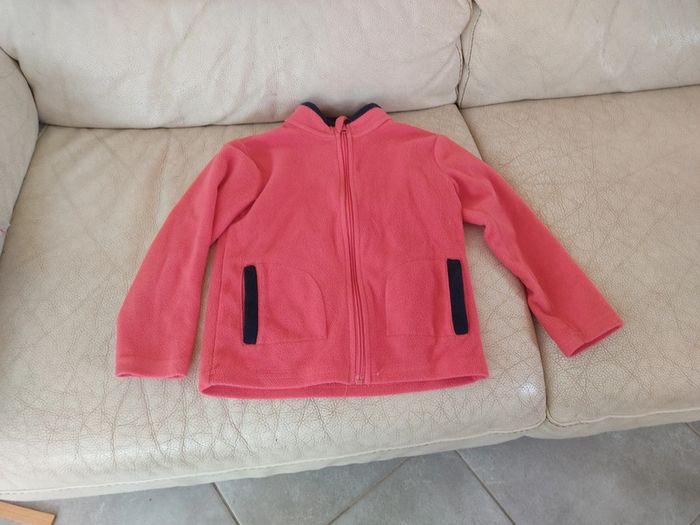 Gilet fille taille 5 ans. Polaire. Avec zippé. Marque u essentiel. Défauts: couleur un peu partie sur la fermeture éclair. Une tâche au col. Voir photo