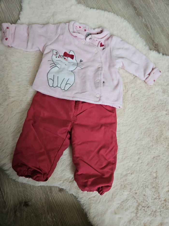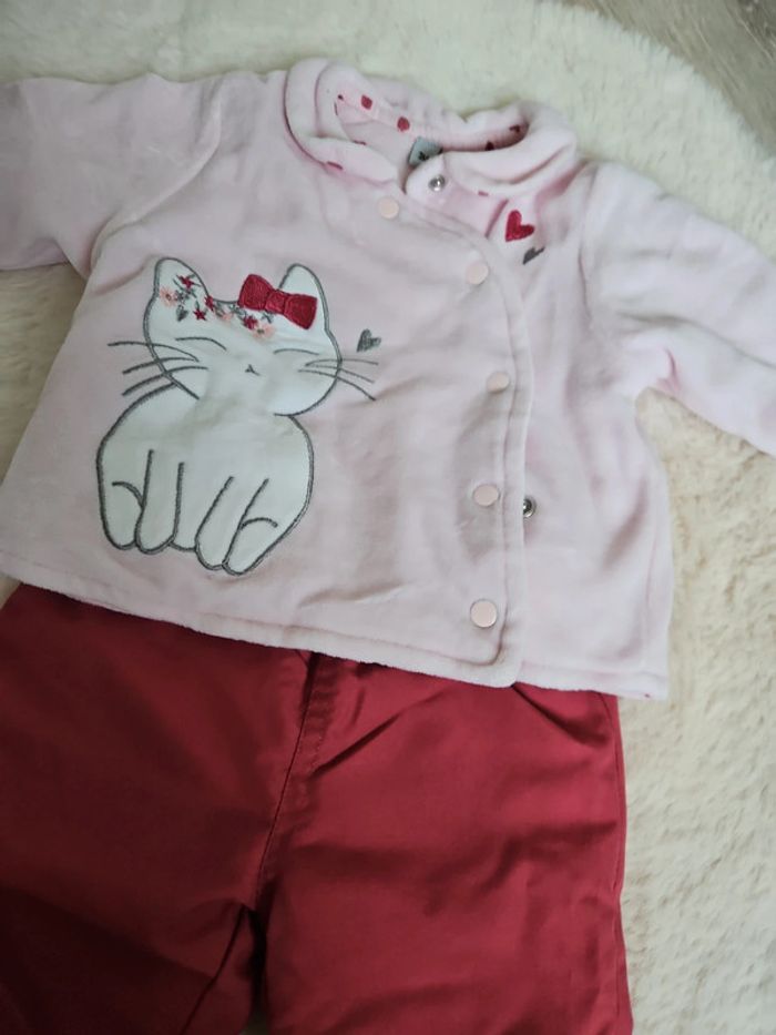 Pull epais doux petit chat et cœurs avec son pantalon doublé à l'intérieur Taille 3M