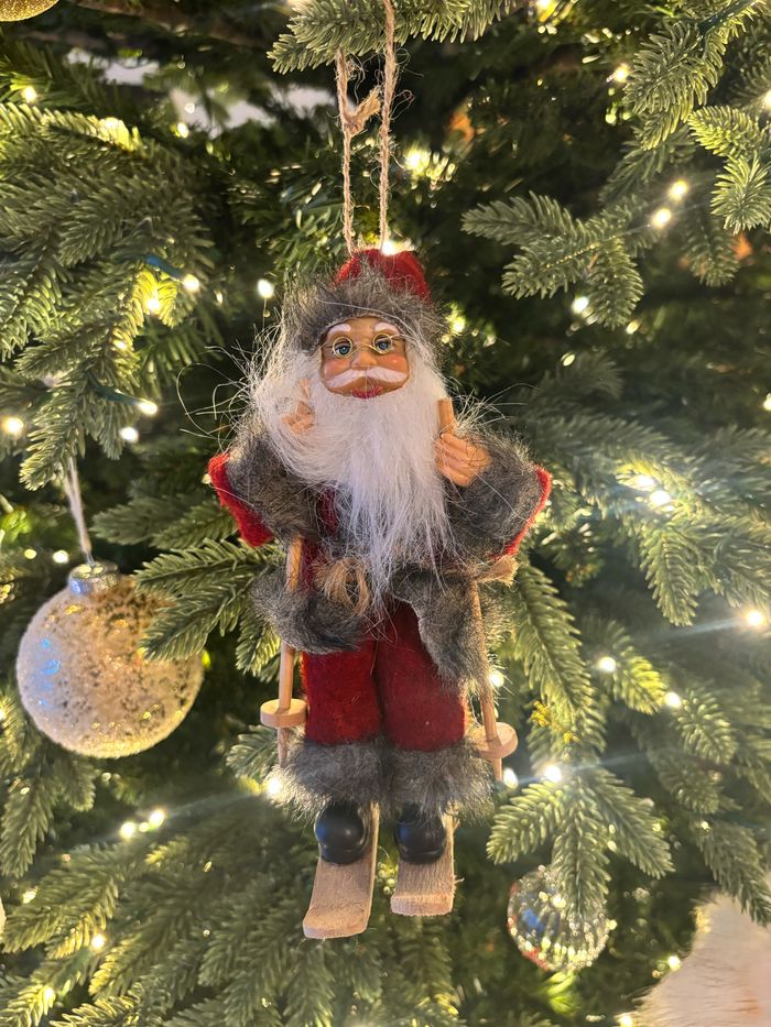 Suspension père Noël qui fait du ski. Possibilité de le poser Matière tissu, plastique et bois Grelot au bout du bonnet Environ 26cm avec la ficelle pour l'attacher Très bon état Pour voir mes autres décorations de Noël / articles pour la maison : #maisonludi2607 N'hésitez pas à faire des lots ✨ Réduction dès 2 articles ✉️Pas de remise en main propre