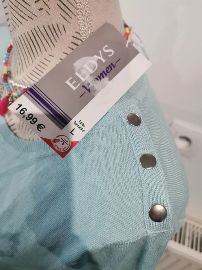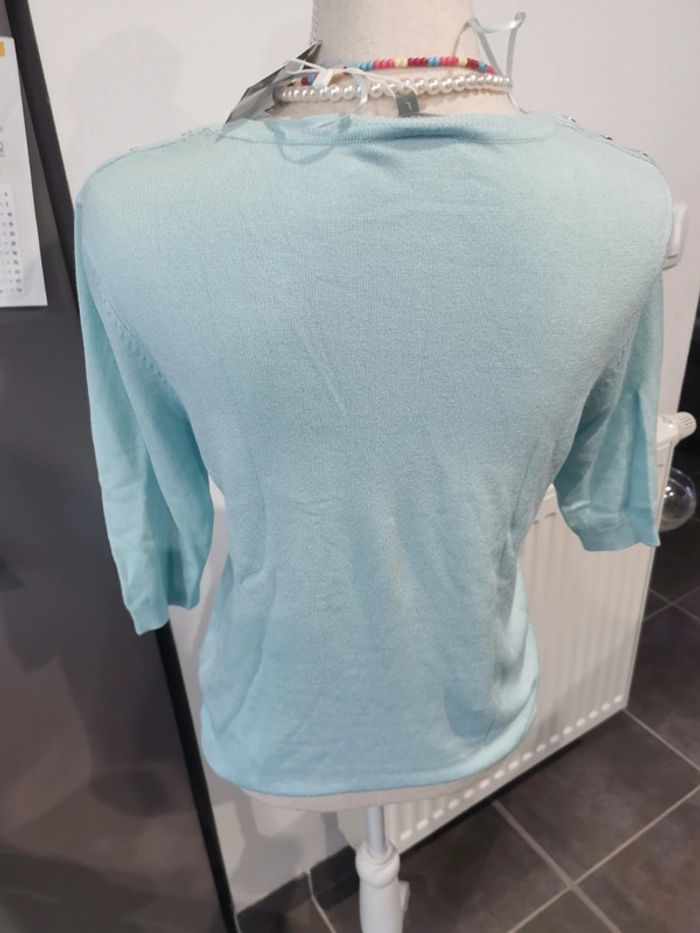 Jolie haut en maille NEUF taille L Couleur bleu/ vert Manches 1/3 Petits boutons sur les épaules