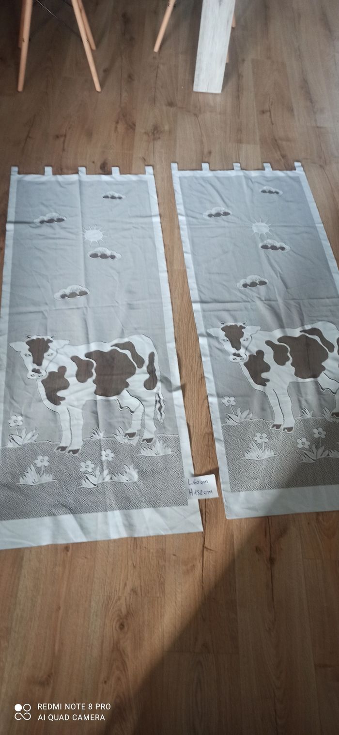 Vends 2 rideaux de Porte imprimes vache l 60 cm h 152 cm