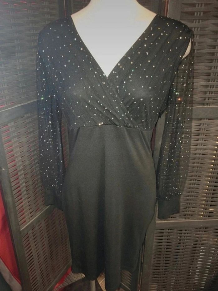Magnifique robe noire avec paillettes Multicolore. Taille M Manches transparentes #A2life_taille38 #fetesdefindannée