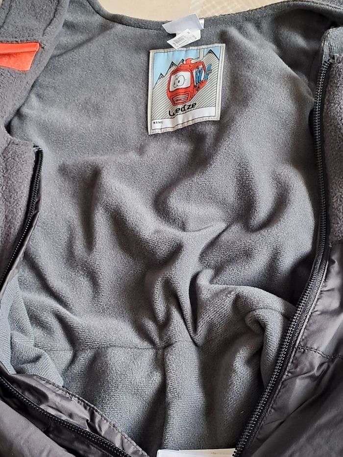Salopette noire et grise à bretelles réglables à scratch Voir 📷 La partie haute est grise en polaire extérieur et polaire Voir les photos pour les usures bas de pantalon et les matières Wed'ze