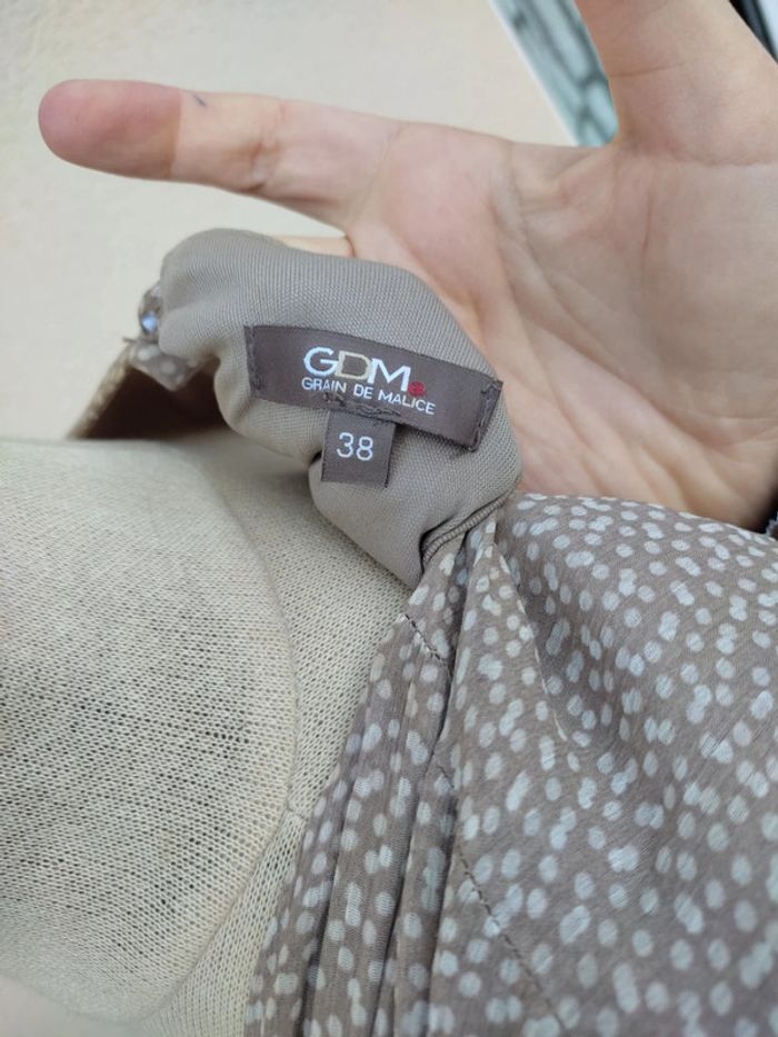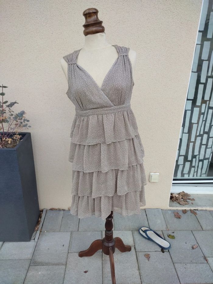 Robe chic Portée une fois pour un mariage Taille 38 Beige points blanc Très bon état