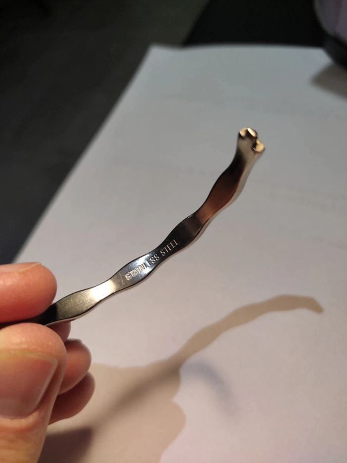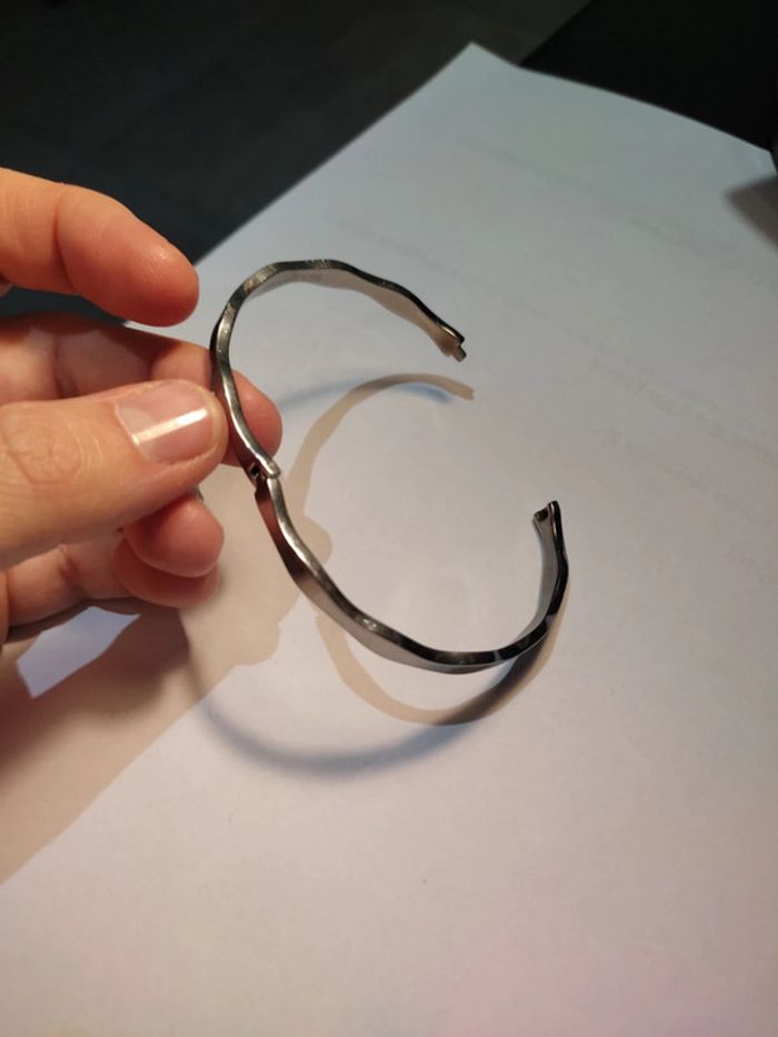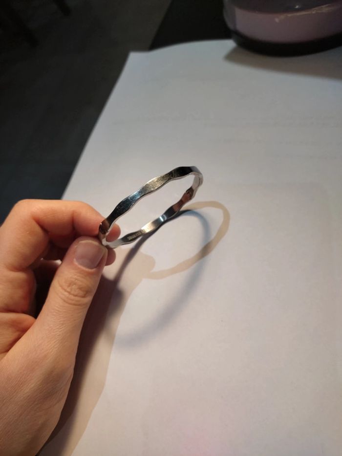 Très bon état Modèle ondulé Haute qualité Jonc argent Résistant Acheté en bijouterie 99 euros Stainless steel acier inoxydable donc très résistant