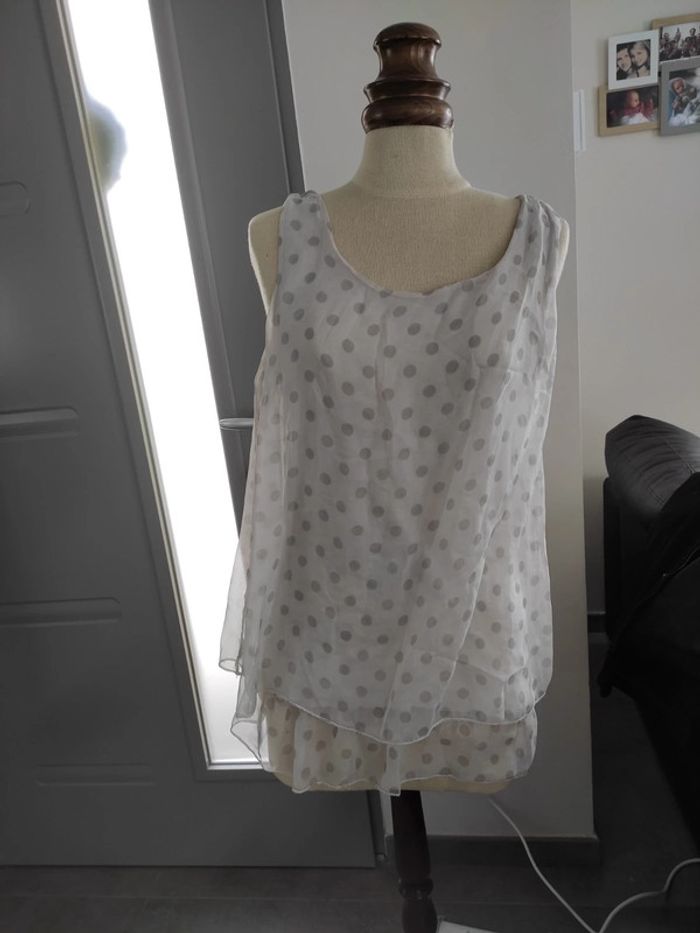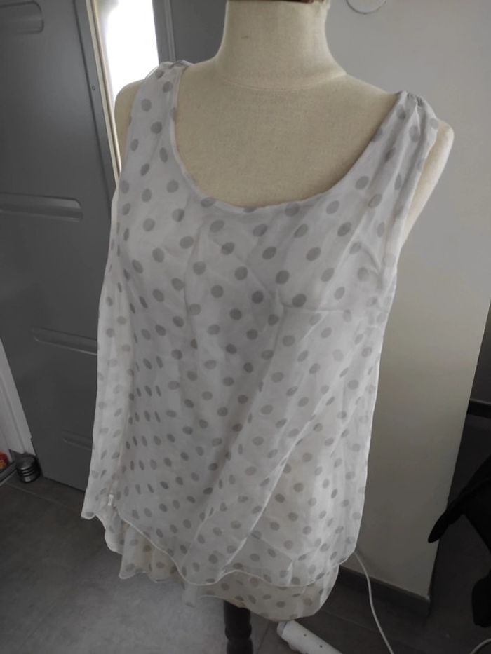 Voilage Très beau débardeur Blanc nacré point gris Taille L Très confortable