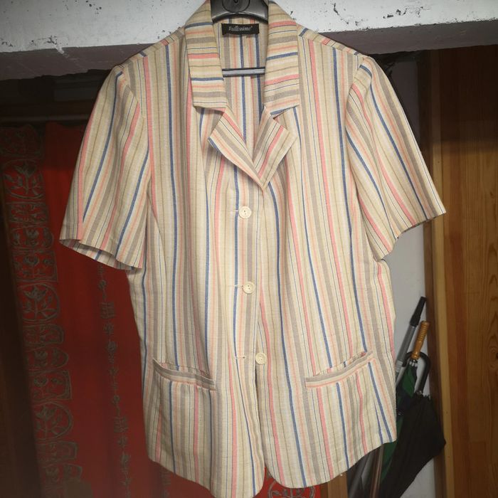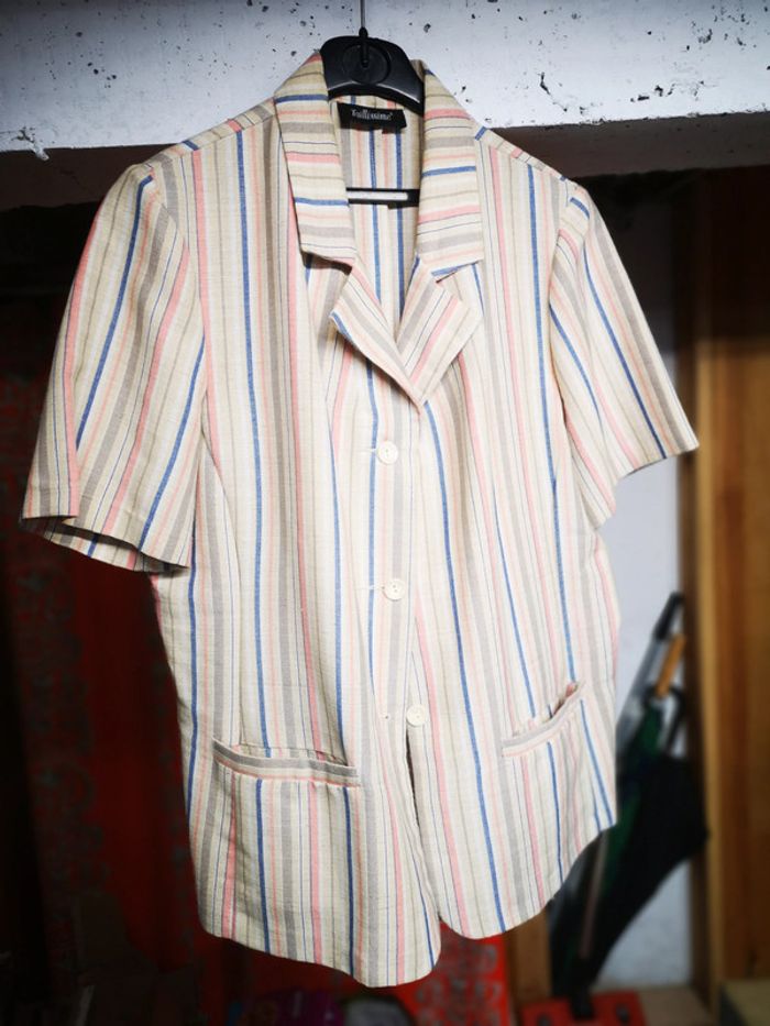 Vrai vintage Veste femme sans manche Tailleur Classe Rayures Chemise ou veste