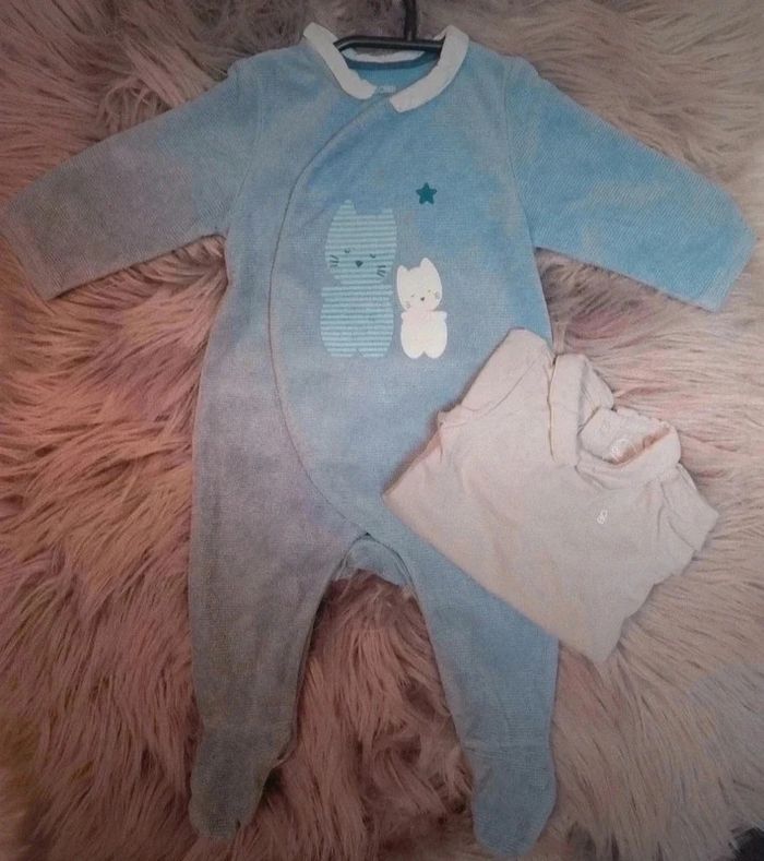 Lot pyjama grenouillère ouverture devant avec bodie manche longue 3mois garçon obaibi avec col #bébé #bebegarcon #vêtements #jonathandru3mois