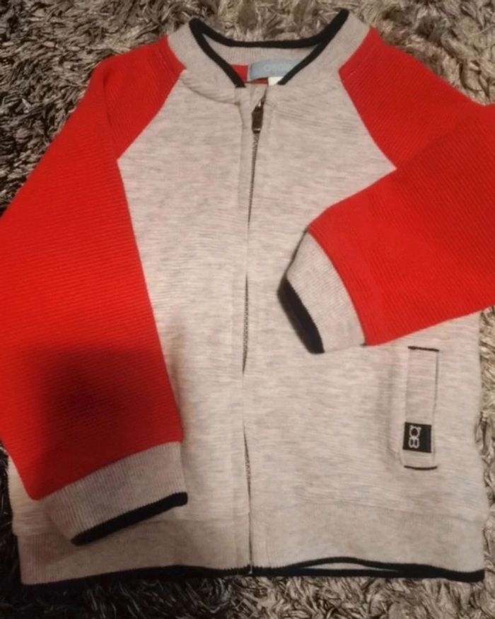 Gilet à fermeture sans capuche obaibi garçon 12mois gris et rouge friend #bébé #bebegarcon #vêtements #jonathandru12mois 74cm