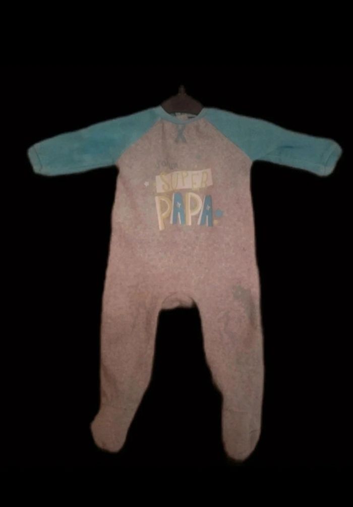 Pyjama grenouillère 6mois super papa #bébé #bebegarcon #vêtements #chaud #velours #jonathandru6mois #gemo