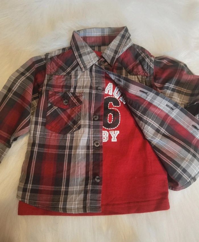 Chemise manche longue garçon porté 1fois comme neuve avec haut en dessous intégré à la chemise 12mois #jonathandru12mois #bébé #bebegarcon #vêtements