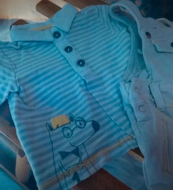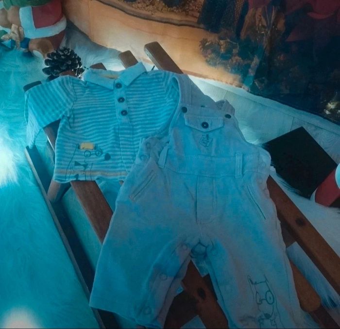 Ensemble comme neuf 1mois salopette avec haut manche longue qui s'ouvre entièrement devant 1mois #orchestra #bébé #bebegarcon #vêtements #chaud #jonathandru1mois #hautmancheslongues idéal sortie de maternité