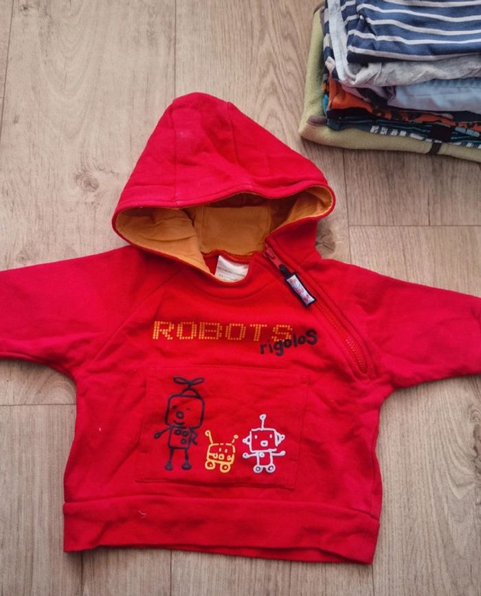 Pull rouge 3mois à capuche #jonathandru3mois #bébé #vêtements #bébégarçon