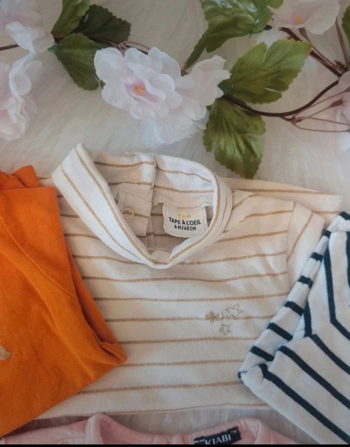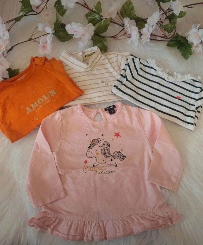 Lot 4 Haut manche longue fille 3 de chez kiabi et 1 tape à l'œil tao 6mois #jonathandru6moisfille #bébé #bébéfille #vêtements