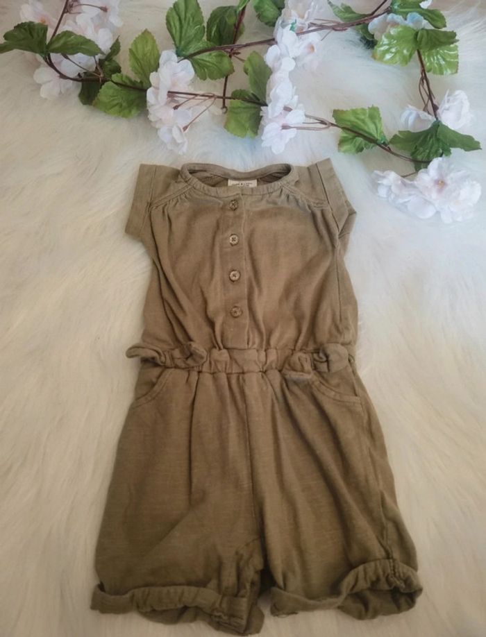 Combishort fille 6mois tape à l'œil tao vert kaki manche courte 68cm 100% coton #bébé #bébéfille #vêtements #été #jonathandru6moisfille