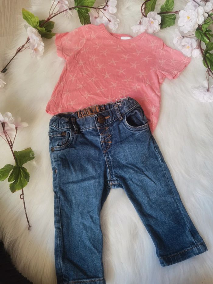 Ensemble 6mois fille Tee-shirt manche courte 6mois p'tit bisous et pantalon jeans 68cm c&a #bébé #bébéfille #vêtements #jonathandru6moisfille
