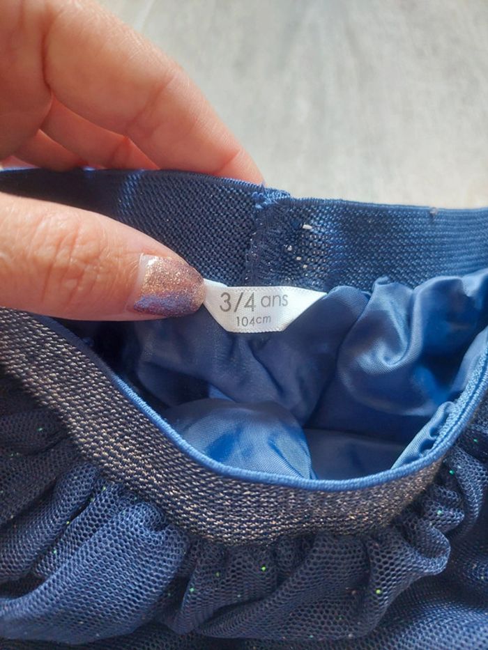 📖 Jupe pailletée avec taille élastique. En tulle, doublée avec du tissu satiné bleu. Portée 1 fois 🏷 Taille 3-4 ans 🛍 D'autres articles dans mon dressing avec #3ansaurelilou34 et #4ansaurelilou34 📉💰 Réductions activées sur les lots