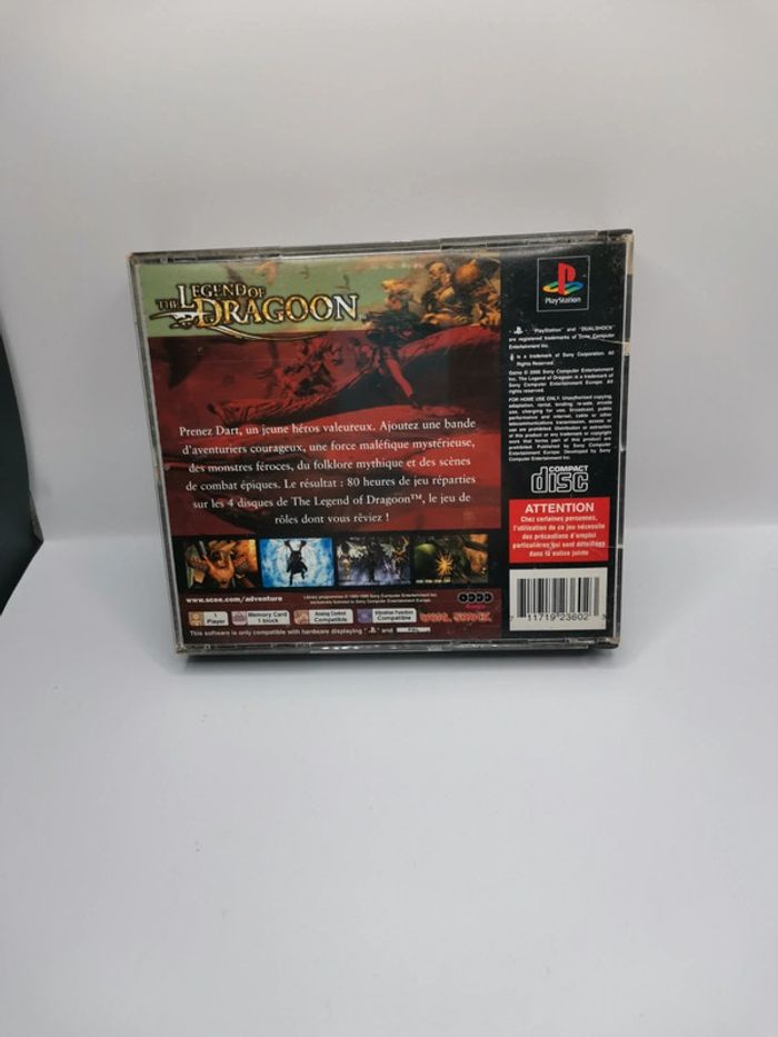 JEUX PS1 THE LEGEND OF DRAGOON JEUX TESTE ET FONCTIONNEL PEU COMPORTER DES TRASSES D'USURE ET MICRO GRIFURE NE GENE PAS POUR LE BON FONCTIONNEMENT DU JEUX BOITE ABÎMER VUE SUR PHOTO SANS NOTICE ENVOI RAPIDE ET BIEN EMBALLER BON ACHAT A VOUS PRIX FERME MERCI 😉 ✅ 👍