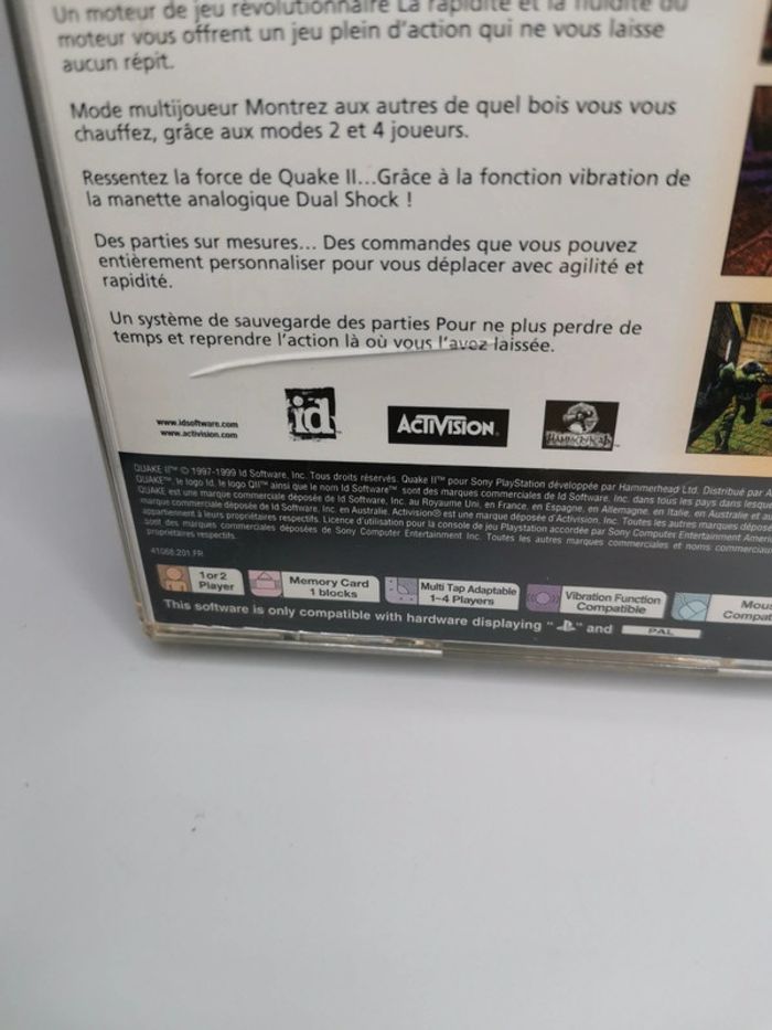 JEUX PS1 QUAKE 2 JEUX TESTE ET FONCTIONNEL PEU COMPORTER DES TRASSES D'USURE ET MICRO GRIFURE NE GENE PAS POUR LE BON FONCTIONNEMENT DU JEUX BOITE ABÎMER VUE SUR PHOTO COMPLET ENVOI RAPIDE ET BIEN EMBALLER BON ACHAT A VOUS 😉 ✅ 👍