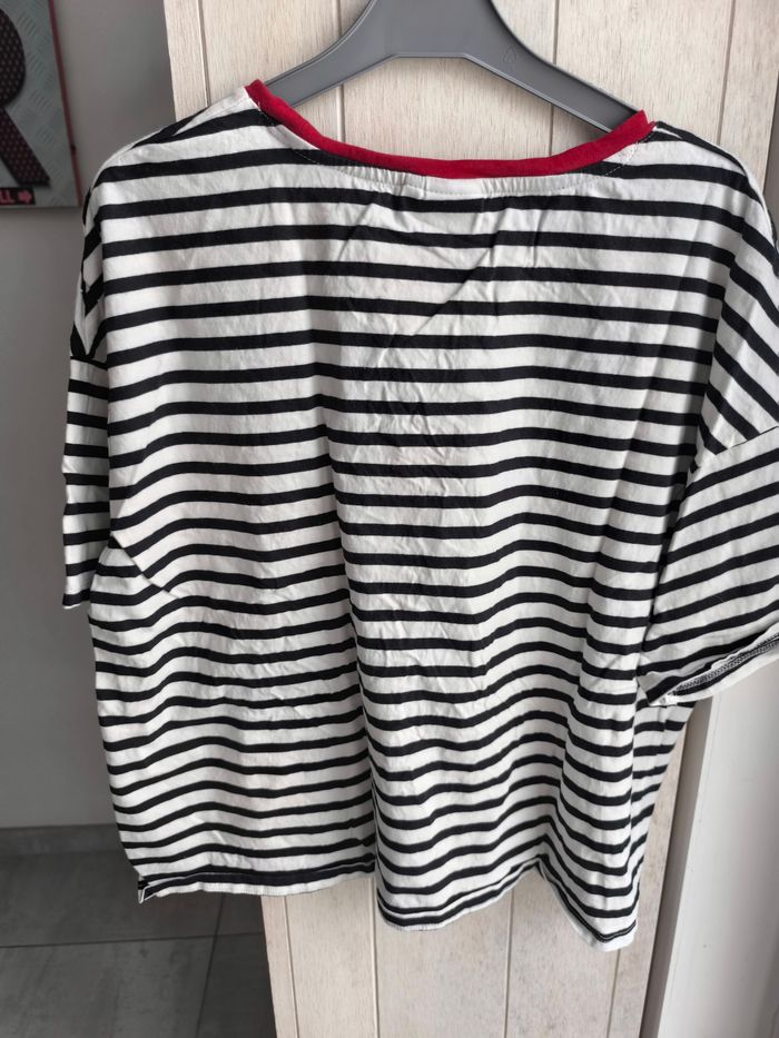 Marque: Kiabi collaboration Disney Couleur: Noir, blanc et rouge Taille:XL mensurations en photo pas de photos portées je ne rentre pas dedans Matière: Coton Etat: Très bon état peu porté sera à laver et à repasser vendu en l'état
