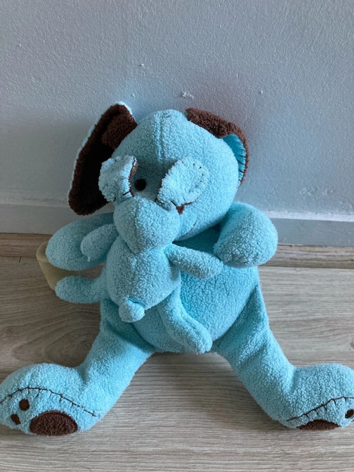 Lapin en peluche qui fait des bisous à son bébé, les museaux sont aimantées Hauteur de la peluche 25 cm environ