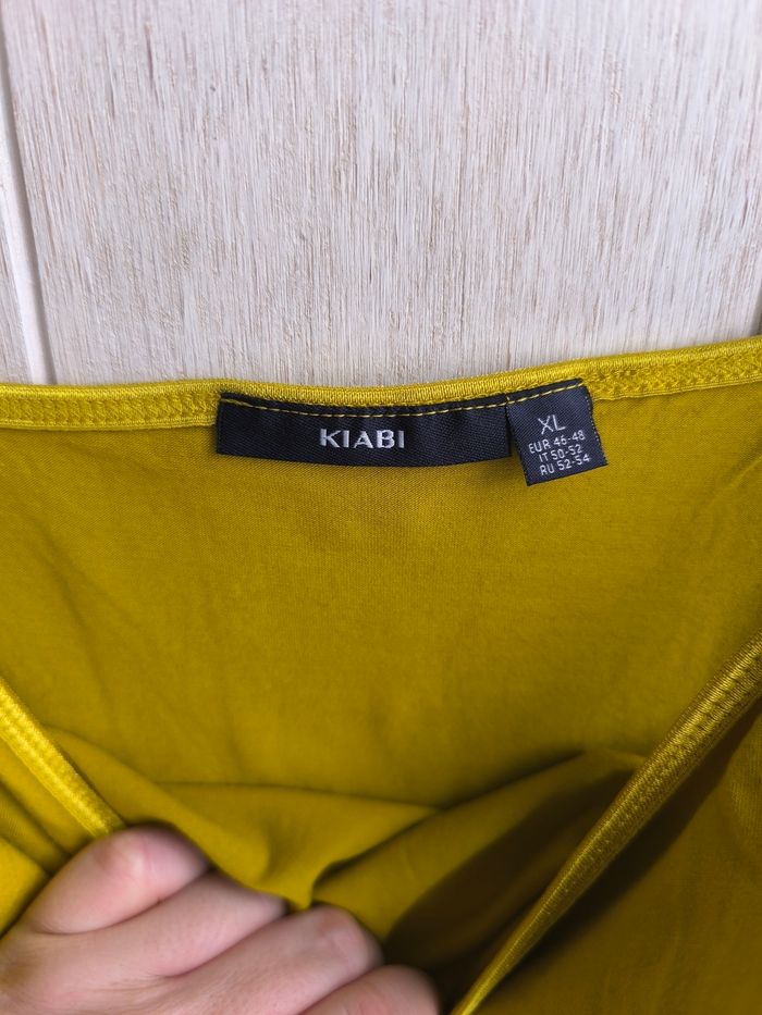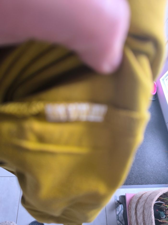 Marque: Kiabi Taille:XL mensurations en photo pas de photos portées je ne rentre pas dedans Couleur: Moutarde Matière:Je ne sais pas étiquette coupée Etat: Très bon état peu porté